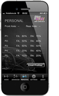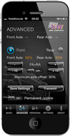 Anzeige der gewählten Dämpferkraft in Echtzeit. Die stufenlose Dämpfereinstellung erfolgt getrennt an Vorder- und Hinterachse. Sobald das individuelle Setup im Rahmen der fahrzeugspezifischen Sicherheitsvorgaben konfiguriert ist, wird es über den Transmit-Button an die Dämpfer weitergeleitet und abgespeichert. Mit der Aktivierung des Features „Permanent Update“ werden die Änderungen in Echtzeit an die Dämpfer übertragen.