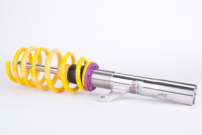 Das KW V2 Gewindefahrwerk ist das Fahrwerk für den versierten Sportfahrer, der zusätzlich zur individuellen Fahrzeugtieferlegung auch Anpassungen im Setup vornehmen möchte. Die individuell einstellbare Zugstufendämpfung gewährleistet eine bessere Anbindung auf schnellen Straßenabschnitten und eine einfachere Fahrzeugkontrolle. Darüber hinaus lässt sich der Abrollkomfort auf Schlechtwegestrecken mit einer angepassten Zugstufendämpfung maßgeblich beeinflussen.