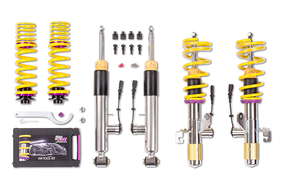 Unsere KW DDC Gewindefahrwerke kombinieren die Vorteile eines adaptiven Dämpfungssystems mit einer stilechten und sportlichen Tieferlegung nach Ihren individuellen Vorstellungen. Erhältlich sind die adaptiven KW Gewindefahrwerke als KW DDC plug&play Variante für Fahrzeugmodelle mit elektronisch geregeltem Serienfahrwerk und in der Ausführung KW DDC ECU mit optionaler Smartphone-App-Steuerung für Fahrzeuge ohne aktiv regelndes Fahrwerk. Aktuell sind die KW DDC plug&play und KW DDC ECU Gewindefahrwerke für über 300 Fahrzeugtypen erhältlich.