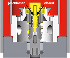 Federbelastetes Bypassventil der Druckstufendämpfung im geschlossen Zustand vor dem Betätigen der Druckstufe