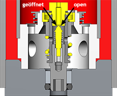 Federbelastetes Bypassventil der Druckstufendämpfung im geöffneten Zustand vor dem Betätigen der Druckstufe